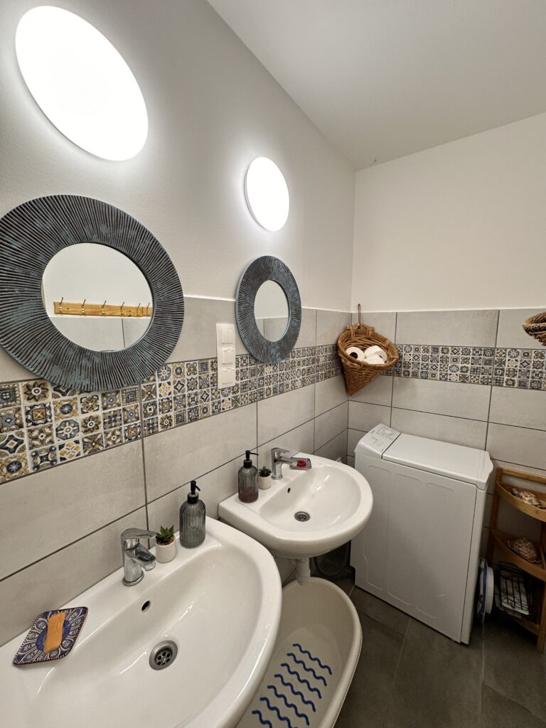 Letisztult zuhanyzós fürdőszoba. Modern, otthonos és mégis különleges.